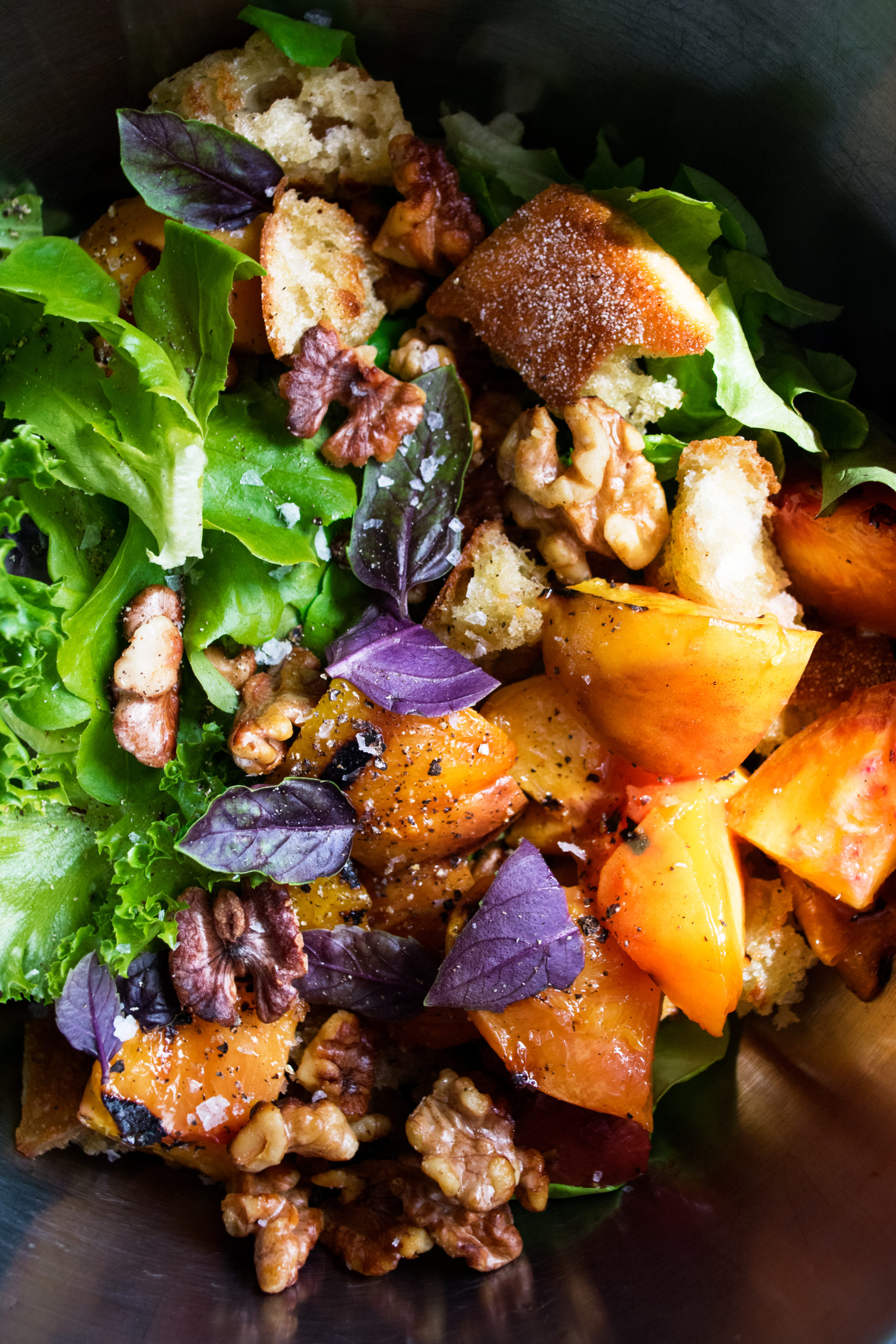 Grilled Peach Salad with Gorgonzola & Walnuts