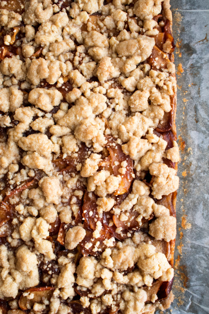 All in all, there’s lots of flour, brown sugar, and butter prepared in a variety of ways in this recipe, with sweet cinnamon apple flavor running throughout, and a pinch of salt here and there to help brighten up those cozy flavors. It’s a very decadent dessert, one that I love best eaten nice and warm. If you’re eating leftovers, just heat a square in the microwave for 20 seconds or so for the perfect soft & buttery texture.