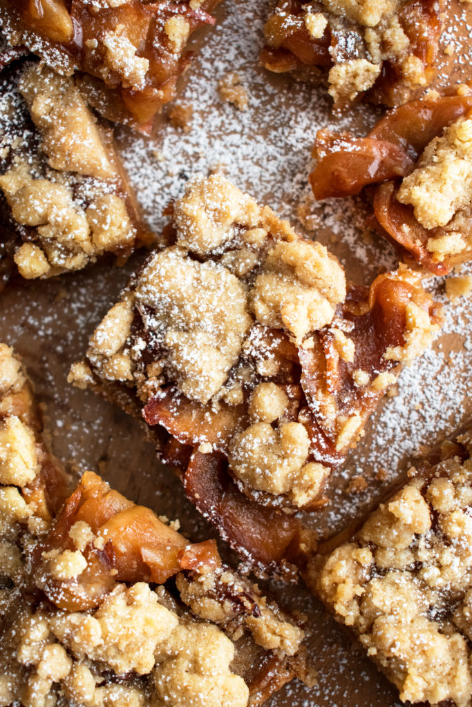 simple, decadent caramelized cinnamon apple crumb bars with a soft shortbread crust, sweet brown sugar & apple filling, and buttery streusel topping