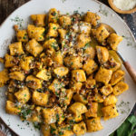 Plate the gnocchi with all of the sauce spooned over top. Garnish with a generous sprinkling of grated parmesan and freshly cracked black pepper.