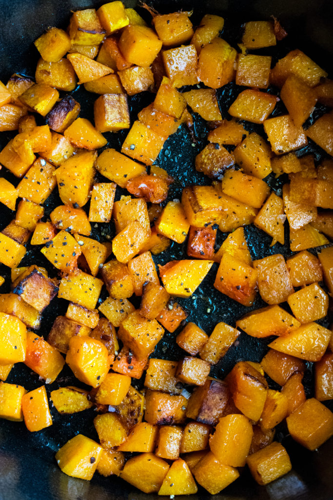 - 1 (2 lb) butternut squash, peeled + seeded + diced ½”