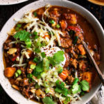 And of course, the best part of this spiced lamb chili is the toppings! You can keep it simple with just one or two, or go all out and add a dollop of tangy yogurt, lots of shredded white cheddar cheese, thinly sliced green onions, and fresh cilantro.