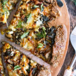 Preheat the oven to 425°F. Once the dough has finished chilling, allow it to sit at room temperature for a few minutes to slightly soften. Place the dough onto a lightly floured surface and sprinkle more flour over top. Use a rolling pin to gently roll the dough out (aim for a 12” circle). Carefully transfer the dough to a sheet pan lined with parchment paper.