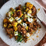 PrintMaple Roasted Delicata Squash with Goat Cheese & Savory Granola