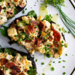 From there, all that’s left to do is assemble! A bed of watercress goes down on some toasted rye bread (see the notes section of the recipe for how I like to toast it) before the salad gets spooned over top. Last but not least, make sure to reserve some of the bacon to sprinkle over the toast, along with extra fresh dill and chives for a final pop of herbs.