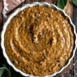 A deeply flavored roasted onion butter with notes of caramelized garlic, thyme, sage, and black pepper. The onions and garlic are roasted in olive oil until slightly charred and tender, then blended with softened butter to create a highly versatile flavored butter.