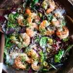 A seasonal radicchio salad with shrimp and citrus herb vinaigrette to welcome in the winter months! This salad is bright & refreshing, with plenty of rich flavor to complement the tangy dressing. The roasted shrimp adds a hearty element and turns this salad into a very satisfying meal.