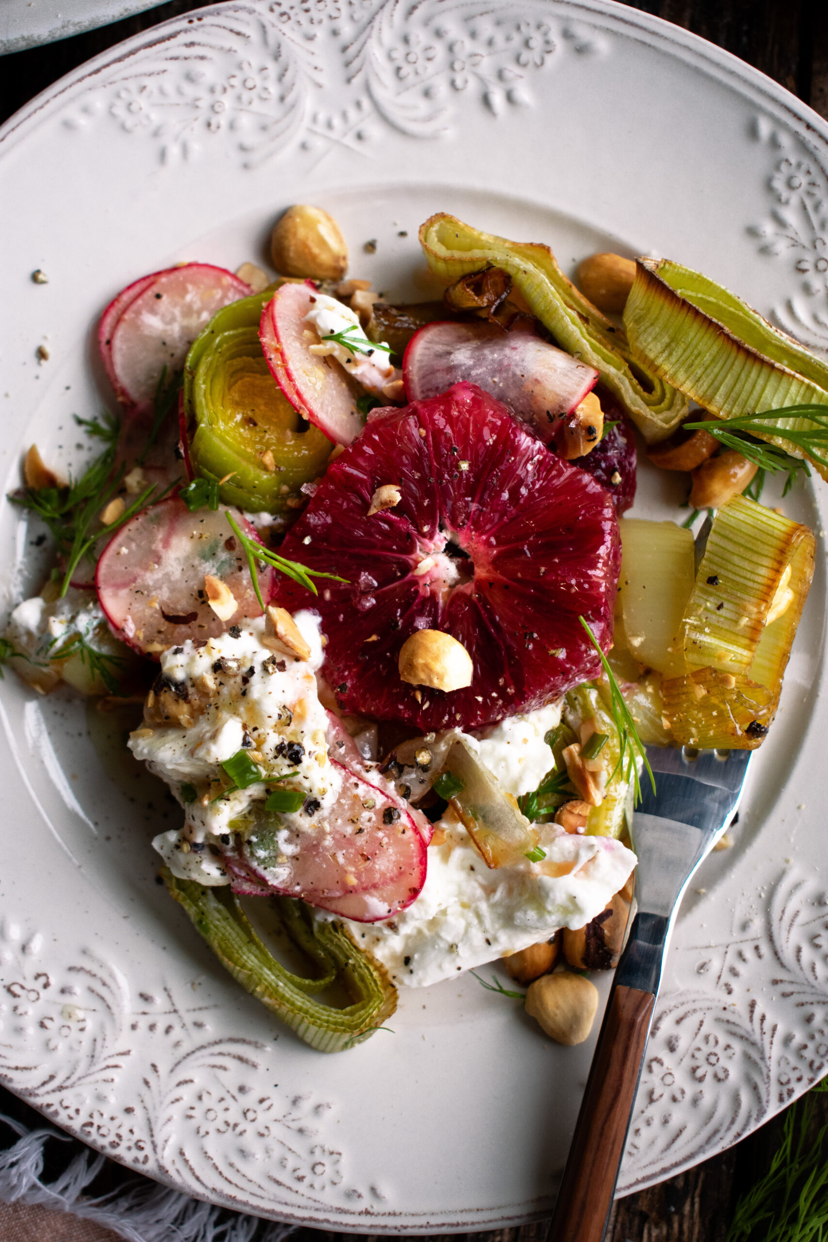 Roasted Leek & Blood Orange Salad Posted on January 25, 2023January 26, 2023 by The Original Dish Roasted Leek & Blood Orange Salad