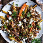 An exciting side dish for spring: roasted carrots with scallion vinaigrette, juicy raisins, salty feta cheese, and crunchy hazelnuts. It’s simple to make, yet bursts with flavor and texture. A great recipe to keep in your back pocket when you need a vegetable dish to add on to any springtime dinner menu!