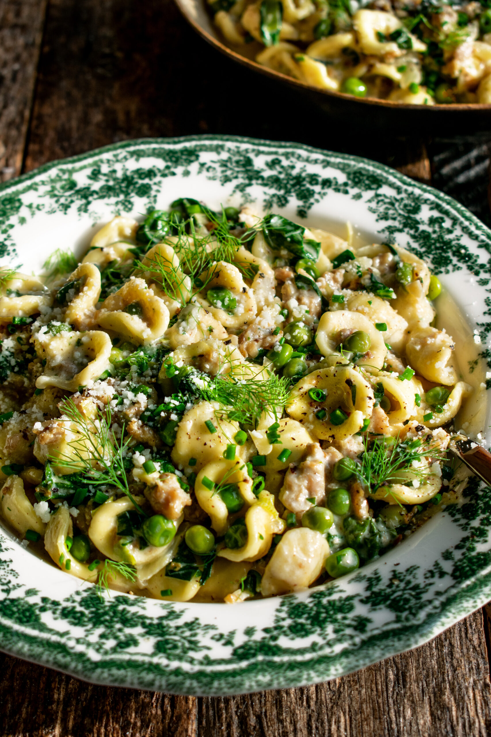 Creamy Orecchiette with Chicken Sausage & Spring Vegetables