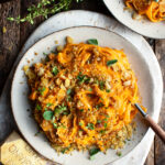 An end of summer recipe to celebrate the peak tomato season: creamy tomato pasta with herb breadcrumbs. The sauce is extremely creamy and flavorful from both mascarpone & parmesan cheeses. And it’s bursting with fresh, sweet tomato flavor. The breadcrumbs on top are such an irresistible contrast of texture and make this pasta extra special.